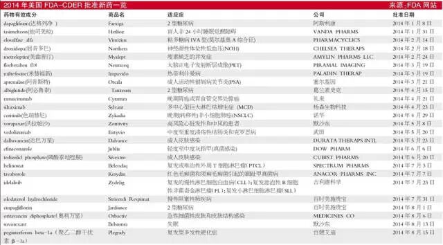 导读:2014年美国FDA药品评价和研究中心(CDER)批准了41个新分子实体(NME)和生物制品许可申请(BLA)(不包括FDA生物制品评价与研究中心(CBER)批准的疫苗、血液制品等产品),高于2013年(27只)和2012年(39只)的新药数量。