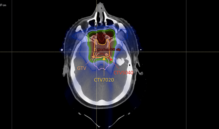 ▲质子治疗颅底脊索瘤计量图,图源:参考来源[3]