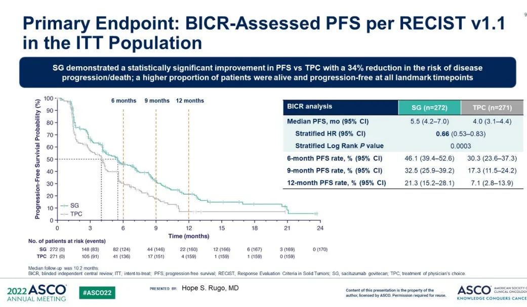 [3]Primary results from TROPiCS-02: A randomized phase 3 study of sacituzumab govitecan (SG) versus treatment of physician’s choice (TPC) in patients (Pts) with hormone receptor–positive/HER2-negative (HR+/HER2-) advanced breast cancer. | Journal of Clinical Oncology